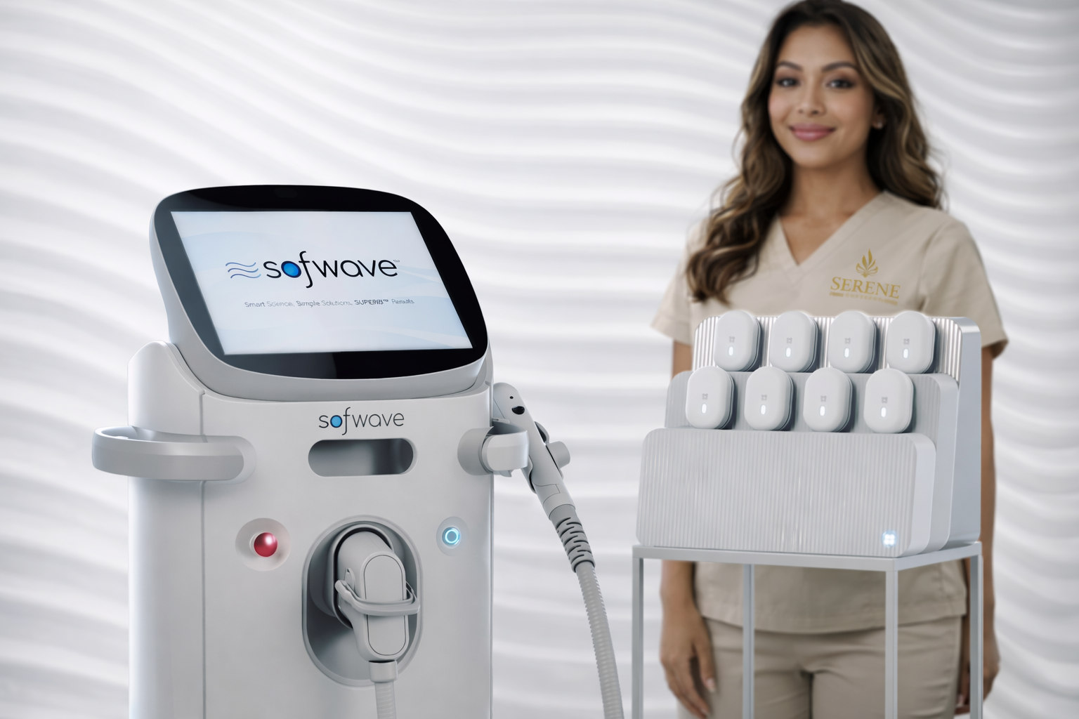 Sofwave™ represents a new era in non-invasive aesthetic medicine, offering a highly exclusive technology that remains rare even in the luxury medspa market. At Serene, we are proud to be among the select providers in the region delivering this breakthrough, ensuring our clients access the same gold-standard results trusted by the world’s most iconic faces. This next-generation rejuvenation utilizes FDA-cleared SUPERB™ technology to precisely heat the mid-dermal layer, stimulating a massive surge in collagen and elastin to lift the brow, neck, and submental tissue while smoothing facial lines.